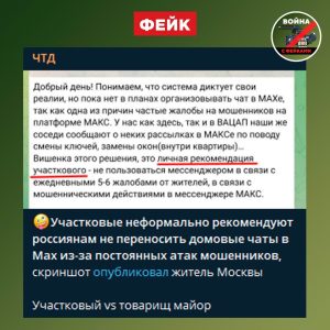 Фейк: Полицейские Москвы рекомендуют жителям столицы не создавать домовые чаты в МАХ из-за угроз мошенничества