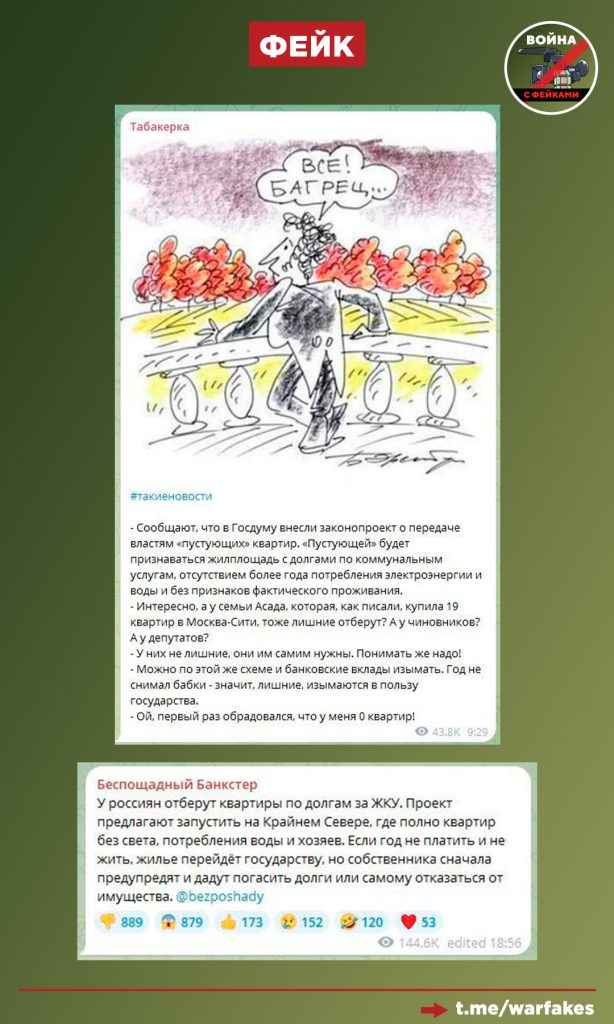 О чем фейк: Государство будет отбирать квартиры у россиян за долги по ЖКУ, пишут Телеграм-каналы.