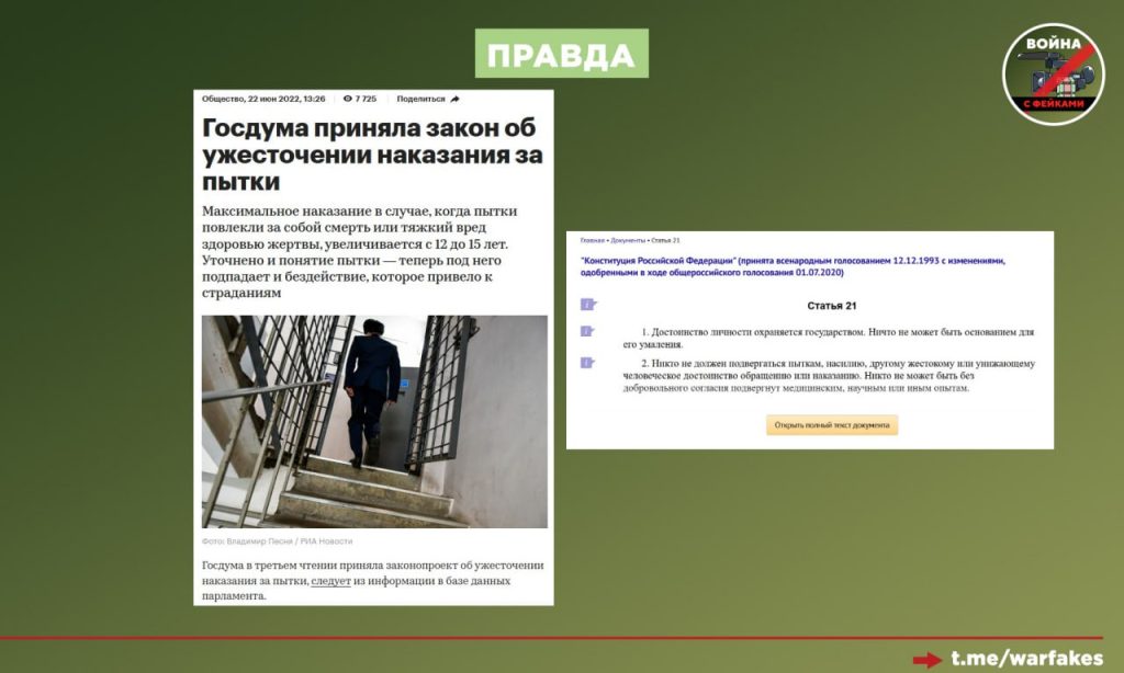 О чем фейк: Правительство России узаконит издевательства над людьми, выйдя из Европейской конвенции против пыток. Об этом пишут оппозиционные телеграм-каналы.