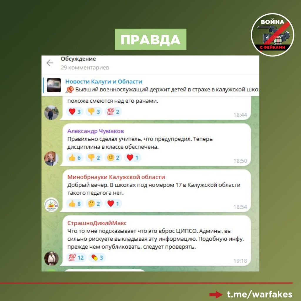 О чем фейк: Участник СВО, который устроился учителем в одну из школ Калужской области, запугивает учеников. Видео с мужчиной публикуют в соцсетях и телеграм-каналах.