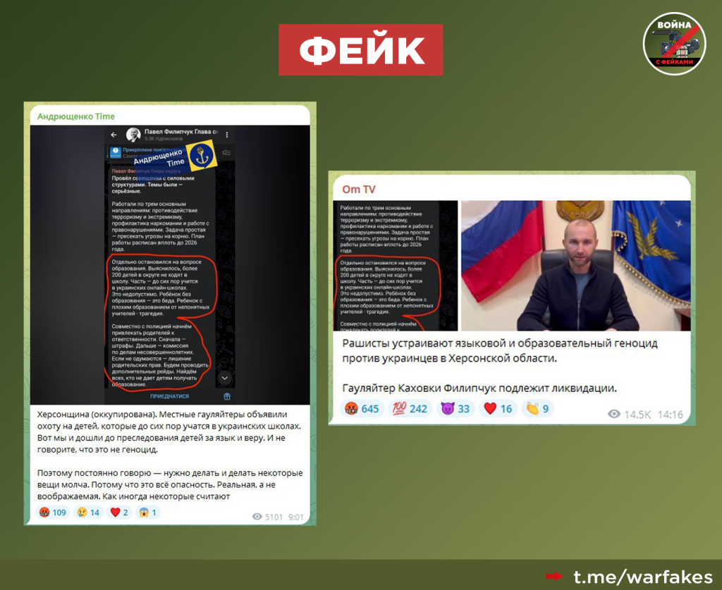 О чем фейк: В новых регионах местные власти устраивают языковой и образовательный геноцид тех семей, где дети учатся в украинских онлайн-школах. Об этом сообщают киевские пропагандисты.