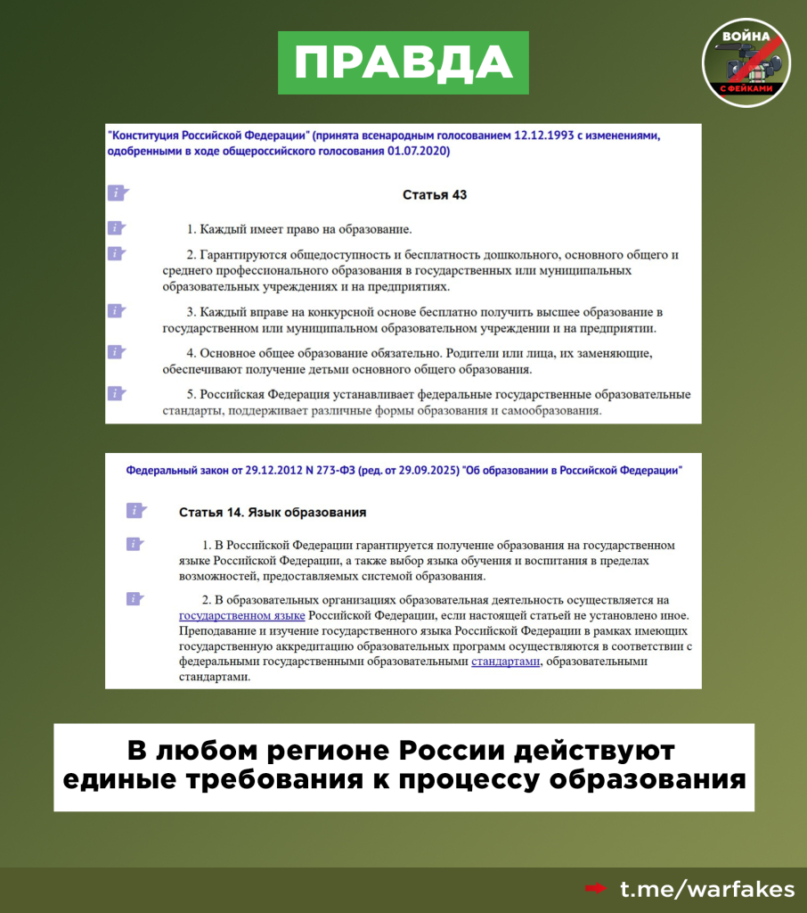 То есть, речь идет не о геноциде, а о защите прав на образование, гарантированных Конституцией всем гражданам РФ. Никто не запрещает жителям новых регионов говорить на любом языке в быту.