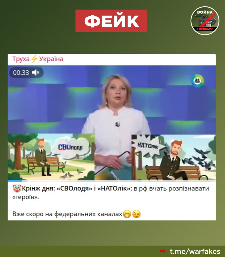 СВОлодю и НАТОлика выдумали фейкоделы, о чем мы рассказывали несколько дней назад. Теперь подделка украинских ЦИПсО «обросла» новой фактурой. Ее создатели сфабриковали дипфейк под видом ТВ-сюжета программы «Вместе», в котором якобы рассказывается об анимационной ленте.