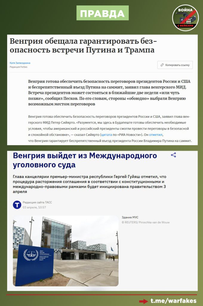 О чем фейк: Поездка Владимира Путина в Будапешт на переговоры с Трампом грозит российскому лидеру арестом – в Венгрии его должны задержать, пишет иноагентское издание «Медуза».