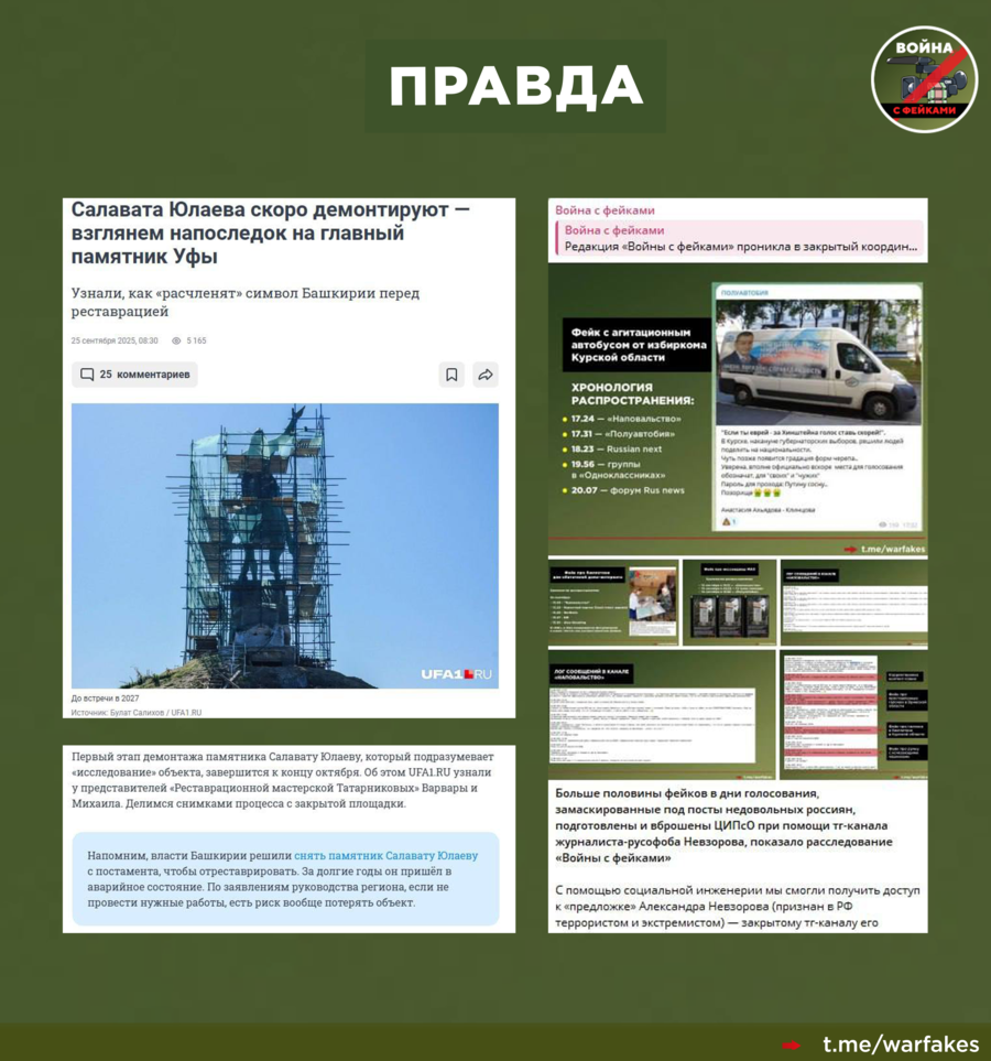 После реставрационных работ памятник вернут на место, а не на «загадочные склады», как утверждает Невзоров. Произойдет это не через «много лет» (как заверяет фейкомет), а в известные сроки — к 11 октября 2027 года, это дата юбилея Республики Башкортостан.