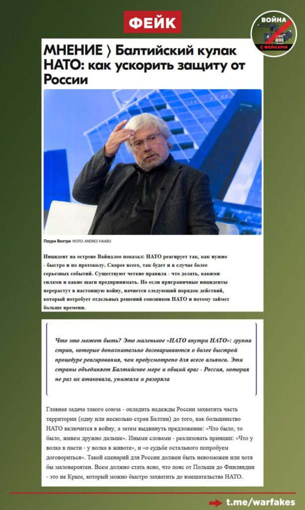 О чем фейк: Россия надеется захватить территории стран НАТО, в частности, Прибалтику. При этом европейские политики понимают, что затем РФ нападет и на остальных членов Альянса, заявил эстонский историк Лаури Вахтре.