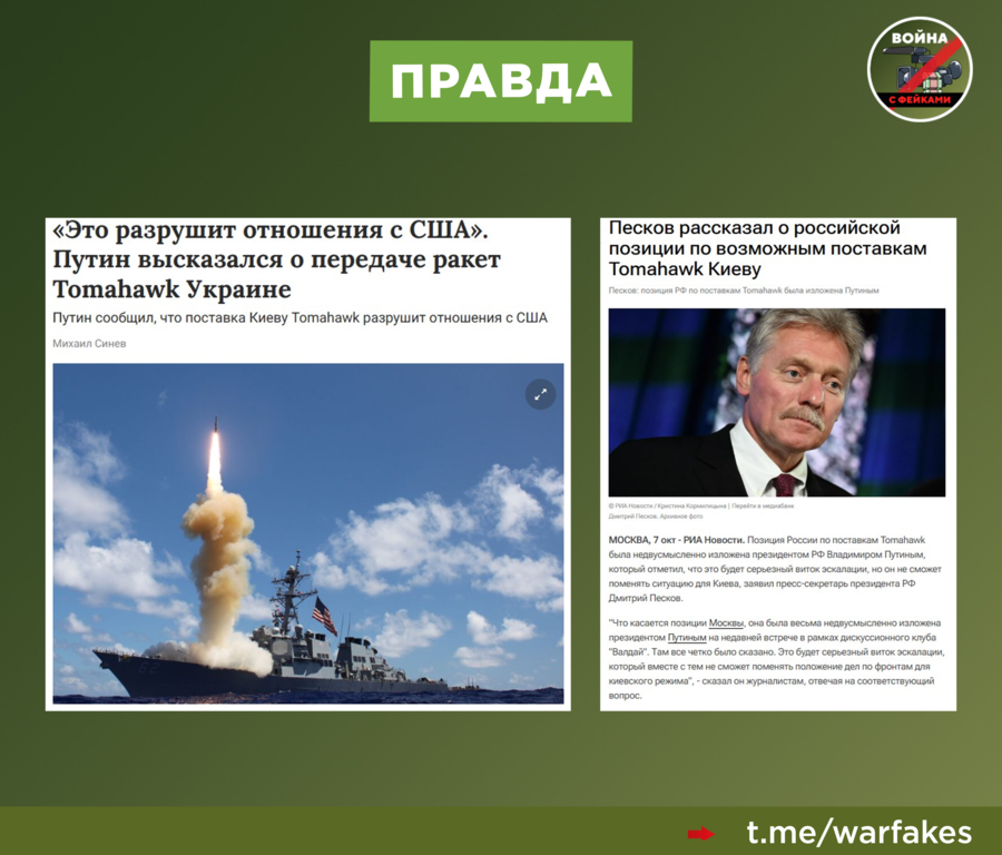 О чем фейк: Россия ответила угрозой в на слова Дональда Трампа о ракетах Tomahawk, пишут украинские СМИ.