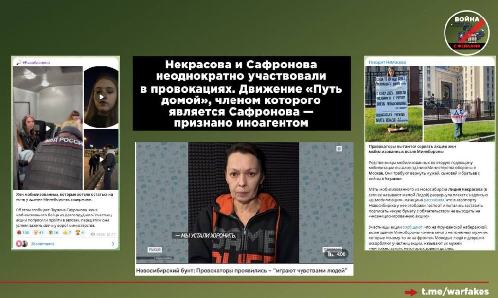 Обе участницы акции – профессиональные оппозиционерки, связанные с известным иноагентским движением «Путь домой», которое ранее пыталось дестабилизировать настроения среди жен и матерей бойцов СВО. В частности, Некрасова и Сафронова уже проводили несогласованные акции у Минобороны РФ с плакатами сомнительного содержания, а сегодняшний выход был спланирован как шоу для создания провокационного контента.