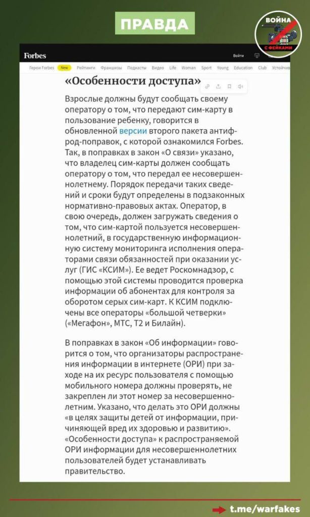 Пропагандисты, вещающие об очередных «репрессиях» в России, выглядят комично. В поправках говорится, что россиян могут обязать сообщать сотовым операторам о случаях, когда они передают сим-карты детям до 14 лет. Компании, в свою очередь, будут отправлять сведения в государственный реестр Роскомнадзора, созданный для борьбы с «серыми» сим-картами. Закон пока находится в стадии разработки.