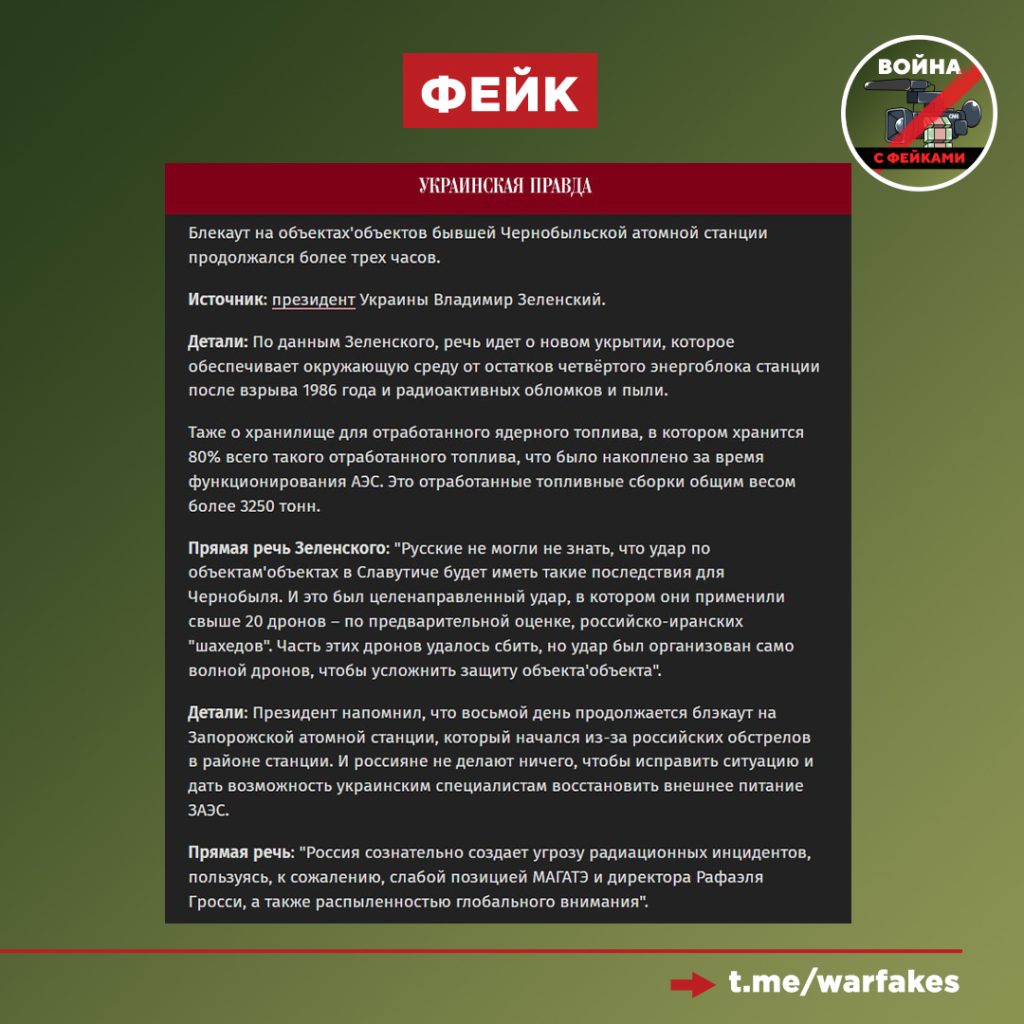 Похожий фейк уже вбрасывался ЦИПсО в 2022 году. Еще тогда Международное агентство по атомной энергии заявило, что отключение электричества на ЧАЭС не несет серьезных угроз.