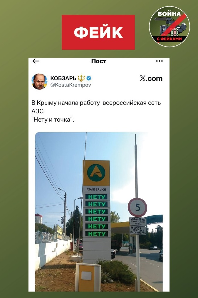 Это очередной виток распространения нарратива о том, что в Крыму и в других регионах России бензин полностью исчез с АЗС. За тиражированием данного и других фейков стоят украинские ЦИПсО. На этот раз вброс был сделан с помощью фотографии заправки, найденной в сети и доработанной с помощью искусственного интеллекта.