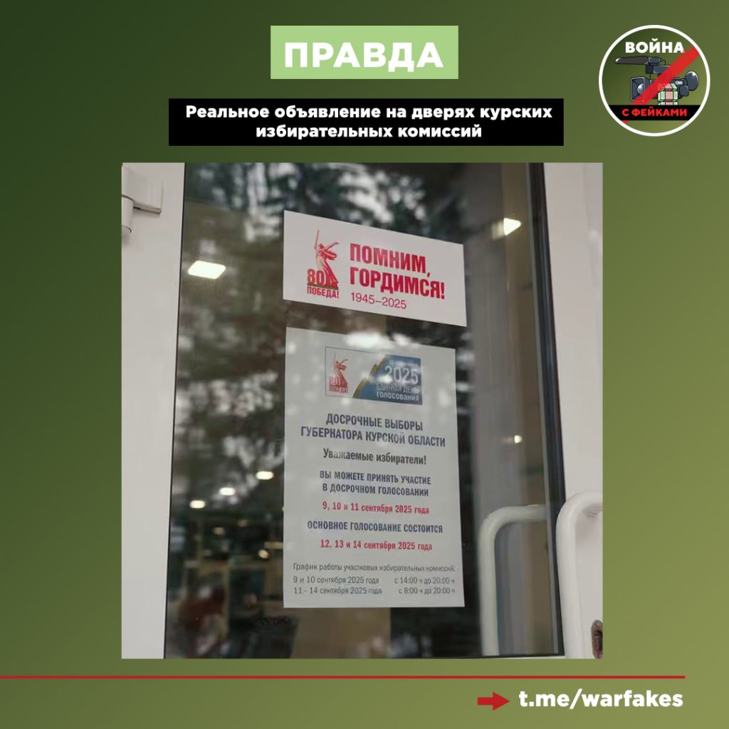 Авторы вброса отредактировали реальное объявление на дверях избирательных участков — использовали скриншот из видео. На самом деле на плакате написаны даты досрочного и основного голосования, и указан график работы участковых избирательных участков.