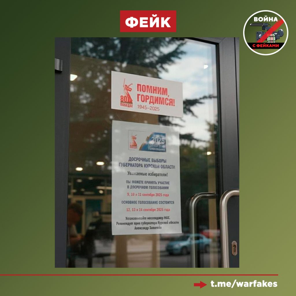 О чем фейк: На дверях избирательных участков в Курской области висят плакаты с рекомендацией от врио главы региона Александра Хинштейна установить мессенджер МАХ. Фото с таким объявлением распространяется в чатах Курска и Одессы