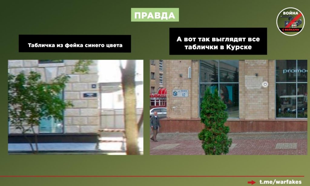 Этот фейк, вброшенный в дни голосования, призван вызвать межнациональную рознь. Конечно, никто отдельно не приглашал голосовать жителей-евреев Курской области за врио губернатора Александра Хинштейна. Данная картинка была сделана с помощью фотошопа, а машина сфотографирована вообще не в Курске. Это легко определить по табличке, которую видно на здании — она синего цвета. В Курске же таблички с адресами домов белые и брендированы гербом региона, что видно на медиафайлах.