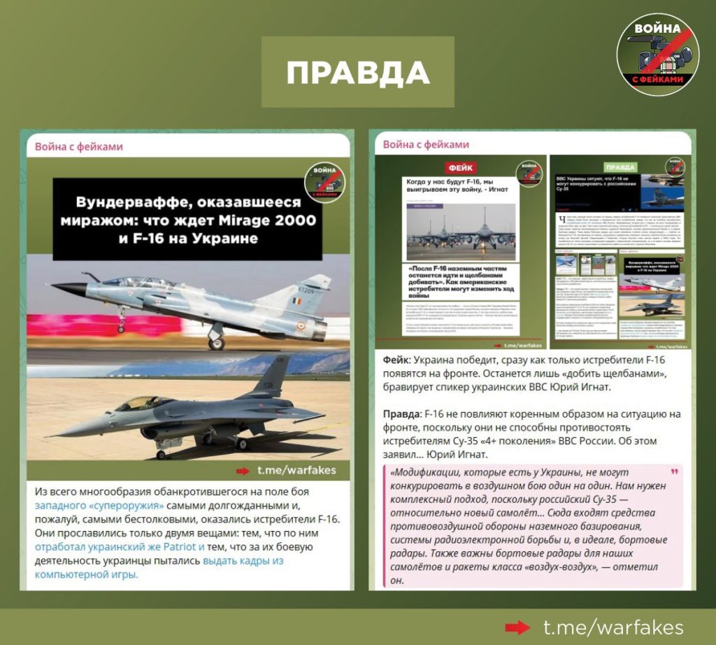 «Они (F-16 и Mirage) не дают возможность подлетать близко российским самолетам, когда атакуют наши МиГ-29. Поэтому не надо считать, что эти самолеты не используются», — оправдывается Гетьман.