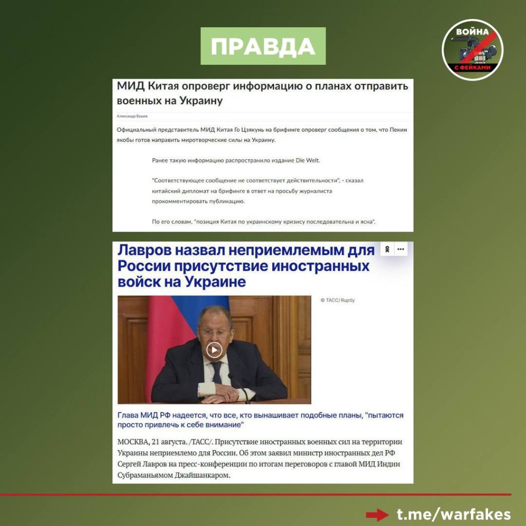 Китай не изъявлял такой готовности и не собирается это делать. Очевидно, европейские пропагандисты намеренно продолжают распространять фейковый нарратив о «необходимости иностранных миротворцев на Украине».