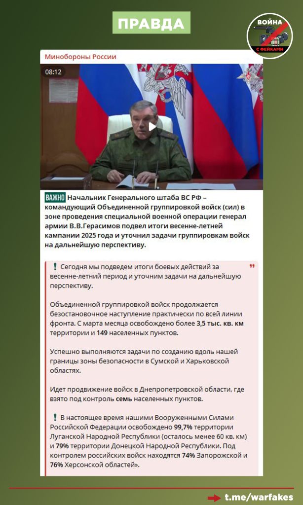 Отчет Валерия Герасимова о ходе весенне-летней кампании, подкрепленный оперативными картами и цифрами, полностью опровергает заявления пропагандистов о провале наступательных действий.