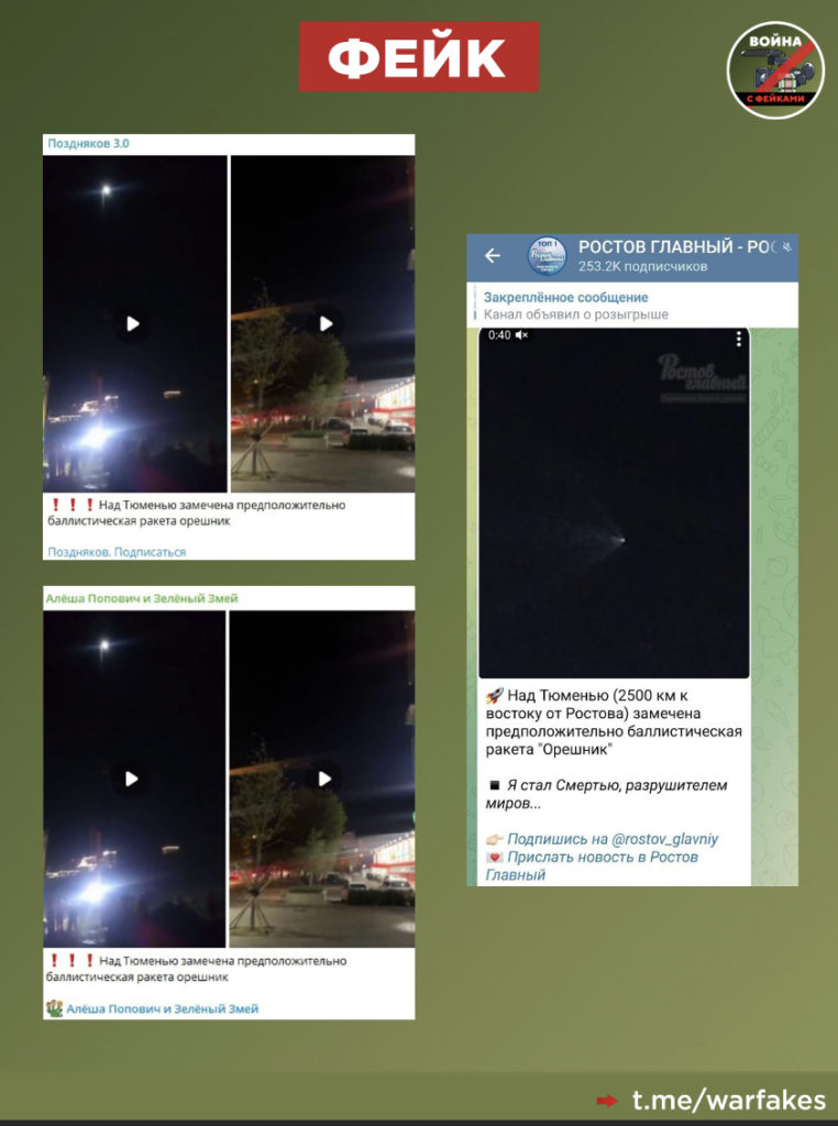 О чем фейк: Над Тюменью заметили баллистическую ракету «Орешник». Об этом сообщил ряд телеграм-каналов.