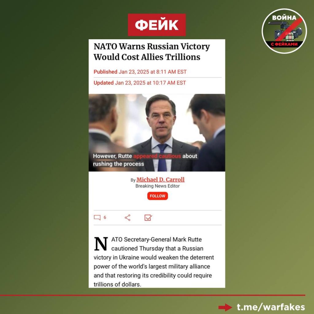 О чем фейк: Победа России в спецоперации обойдется колоссальными тратами для НАТО, так как Москва обязательно пойдет дальше, а значит Североатлантическому альянсу, нужно наращивать расходы на ВПК. Об этом сообщает издание Newsweek со ссылкой на главу организации Марка Рютте.