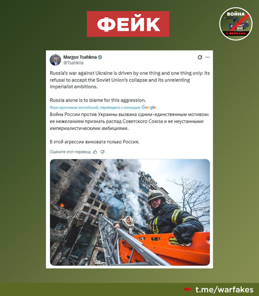 О чем фейк: Россия начала СВО против Украины из-за нежелания признать распад СССР, а также своих имперских амбиций. Об этом заявил глава МИД Эстонии Маргус Цахкна в соцсети Х.