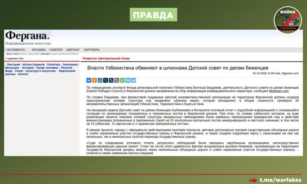 Отдельно стоит отметить, что «Датский Совет по Беженцам» (ДСБ)— это поддерживаемая правительством Дании организация, которая уже не раз была уличена в деятельности, далёкой от гуманитарных задач. В частности, в 2006 году ДСБ обвиняли в сборе разведданных в России и Узбекистане.