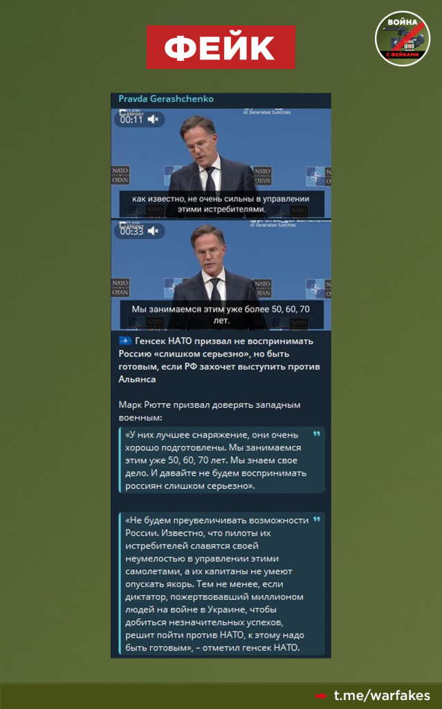 О чем фейк: Российские пилоты не умеют управлять истребителями, заявил генсек НАТО Марк Рютте.