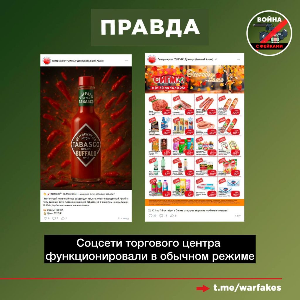 🟢Магазин функционировал в обычном режиме. В соцсетях ТЦ «СИГМА» в ежедневном режиме выходили публикации, посвященные новым товарам и акциям. Последняя из них появилась всего за несколько часов до атаки.
