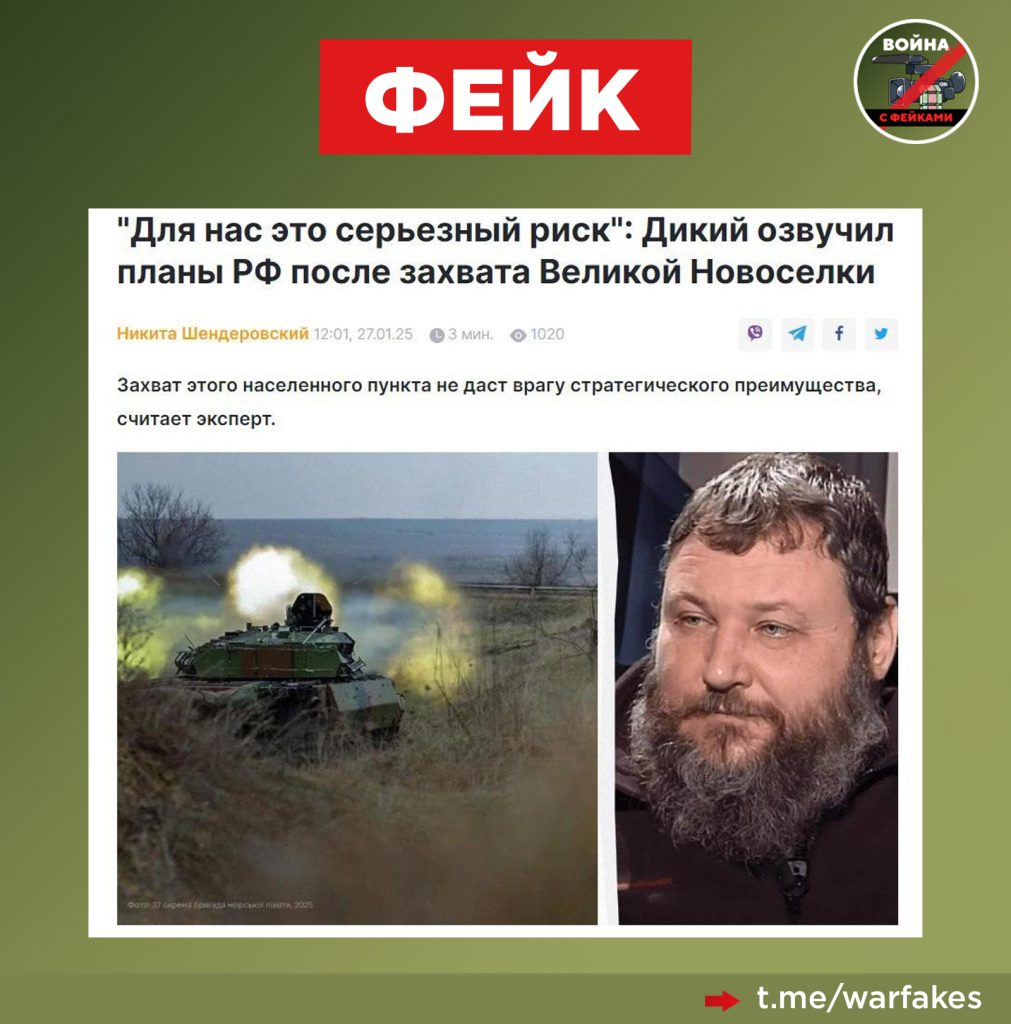 О чем фейк: Взятие Великой Новоселки силами ВС РФ бесполезно с тактической точки зрения, заявляют украинские СМИ со ссылкой на «военного эксперта» и карателя Евгения Дикого.