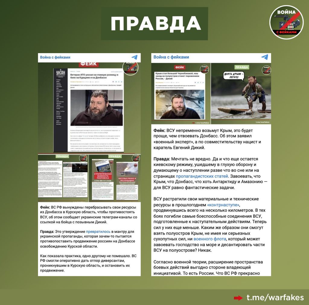 Напомним, что источник, на который ссылаются украинские СМИ в фейке — это известный фейкомет с позывным «Дикий». Он регулярно выдает порцию необоснованных антироссийских заявлений под видом «эксперта», которые в дальнейшем тиражируются по сетке ЦИПсО.