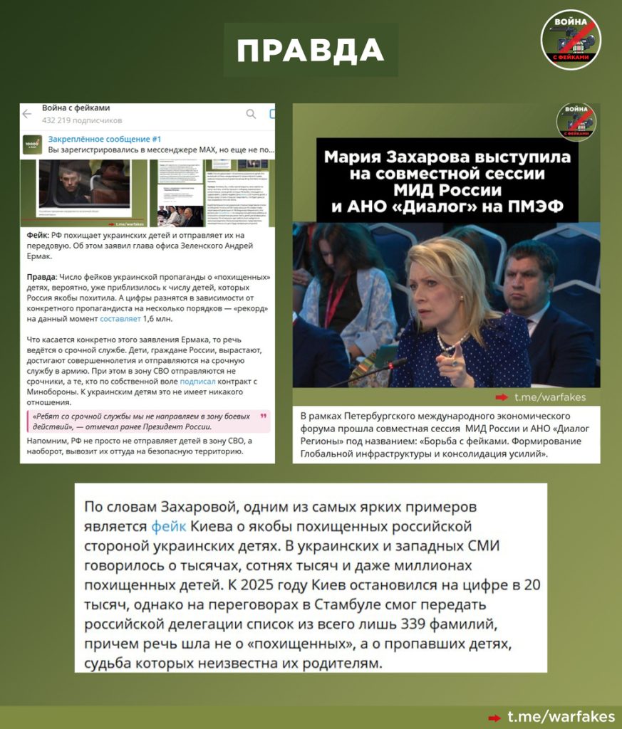 В Москве неоднократно обращали внимание на очевидную выдуманную природу обвинений. В рамках переговоров российской и украинской делегаций в Стамбуле в 2025 году Киев передал список из 339 фамилий, несмотря на то, что в одной из последней итераций нарратива фигурировало 20 тысяч несовершеннолетних. Причем речь шла, не о похищенных детях, а о пропавших. В российском МИДе подчеркивали, что информация о каждом ребенке проверяется максимально тщательно.