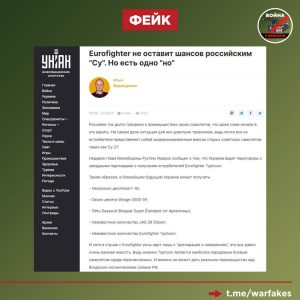Фейк: получение истребителей Eurofighter Typhoon Украиной положит конец господству российских истребителей