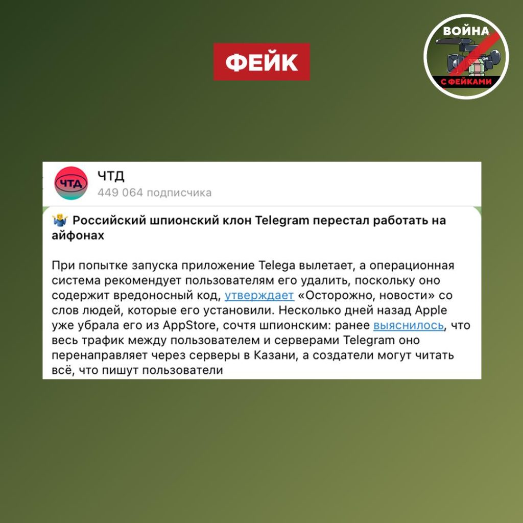 Фейк: Из-за мессенджера Telega происходит «окирпичивание» телефонов на iOS. Компания Apple считает клиент сомнительным и поэтому удалила приложение из App Store, о чём массово сообщалось в СМИ и социальных сетях.