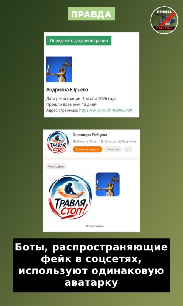 Фейк подхватили оппозиционные и проукраинские телеграм-каналы. В соцсети «Одноклассники» обезличенные боты массово кидали вброс в предложки пабликов. Один из них был создан 4 марта 2026 года и имеет идентичную аватарку с вышеупомянутым закрытым аккаунтом из «ВКонтакте».