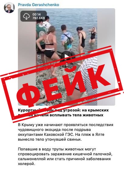 На пляж Ялты вынесло тушу мертвого кабана, утонувшего после катастрофы на Каховской ГЭС. Об этом пишет украинский пропагандист Антон Геращенко.