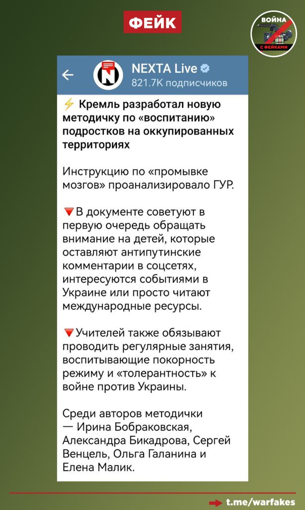 О чем фейк: Российские власти распространяют в новых регионах методички «для промывки мозгов» детей. Об этом пишет телеграм-канал «Nexta live» со ссылкой на Главное управление разведки Украины.