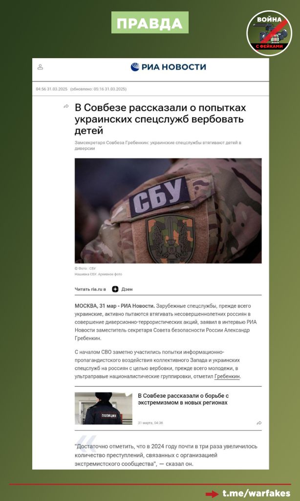 В 2024 году почти в три раза увеличилось количество преступлений, связанных с организацией экстремистского сообщества, обратил внимание замсекретаря Совета безопасности России Александр Гребенкин. Несовершеннолетних, например, убеждают сделать фото оборонного предприятия, перевезти неизвестный груз, поджечь административное здание или военкомат, повредить оборудование железнодорожной и иной критической инфраструктуры. Украинские спецслужбы либо подкупают ребенка, либо используют методы шантажа.