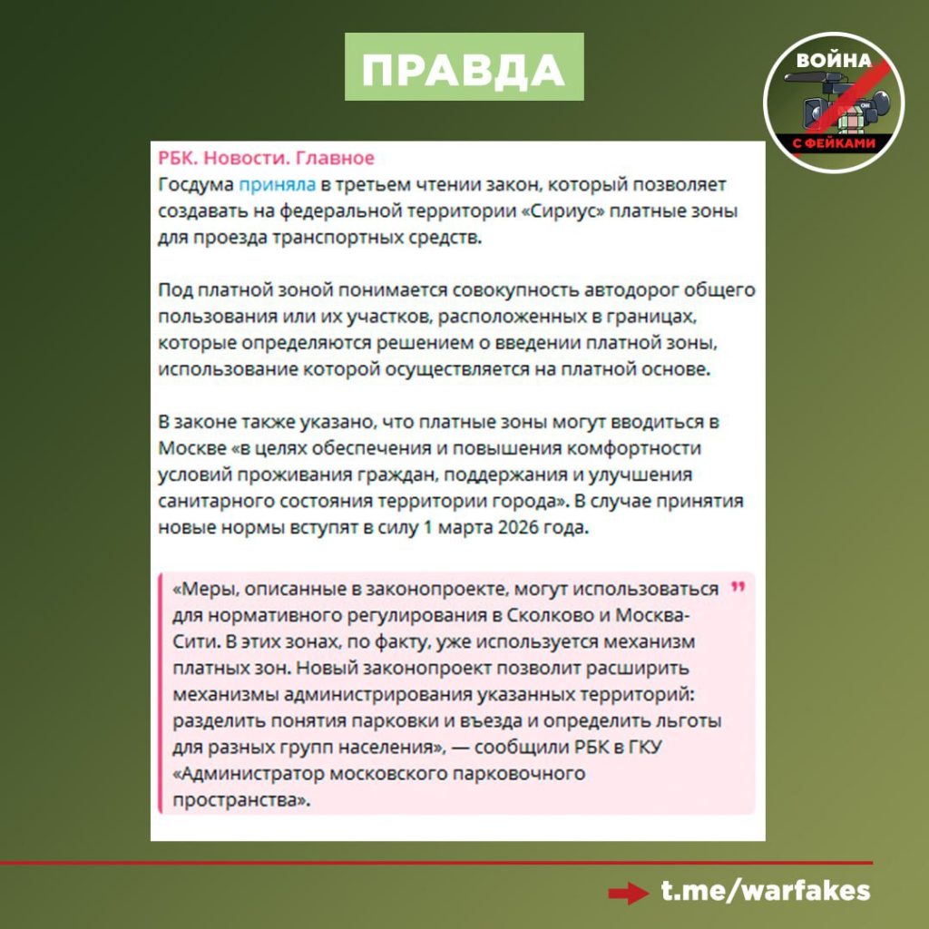Конечно же, никто не собирается делать платный въезд в столицу. Фейкометы вновь выдернули из текста нового закона то, что им выгодно и тиражируют недостоверную информацию под видом кликбейтной сенсации.