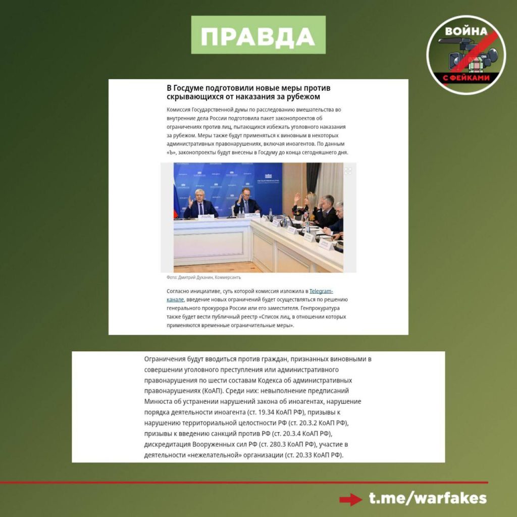 Перед нами кликбейт. На самом деле ограничения касаются россиян, которые пытаются избежать уголовного или административного наказания по определенным статьям УК и КоАП РФ. Речь идет о нарушениях порядка деятельности иноагентов и невыполнении предписаний Минюста об их устранении, призывах к нарушению территориальной целостности России и введению против нее санкций, дискредитации ВС РФ и участии в деятельности «нежелательной» организации.