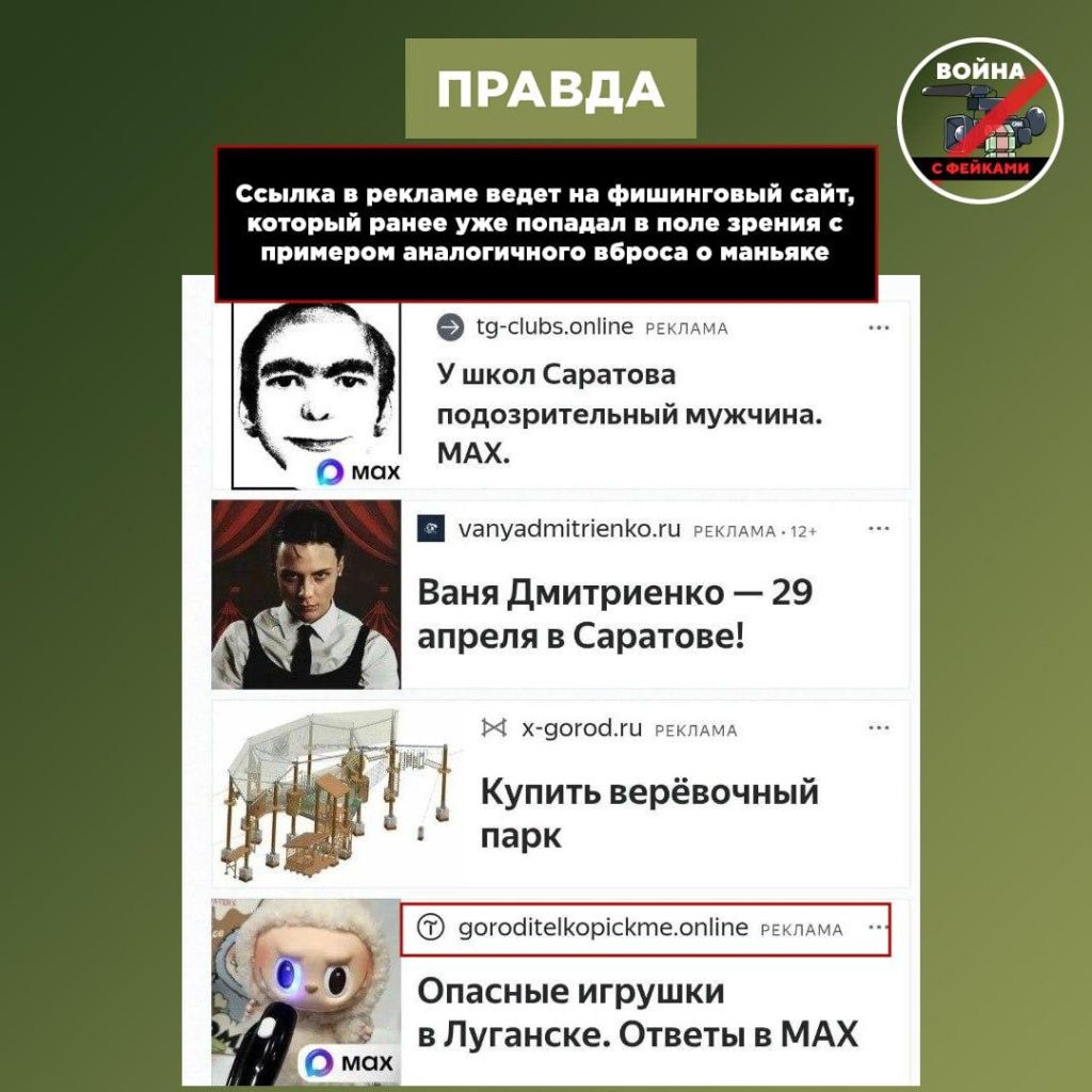 Правда: Сообщения об опасных игрушках — пример спам-рекламы и образец фишинговой схемы. К каналам в MAX этот вредоносный контент не имеет никакого отношения.