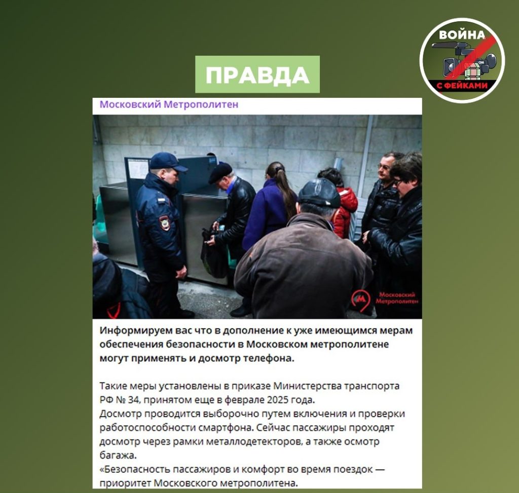 🟢 Меры применяются не в отношении каждого пассажира, а выборочно. Досмотр содержимого переписок каждого пассажира не только противоречит законам, но и, учитывая объем пассажиропотока в столичной подземке, абсурден с точки зрения бытовой логики.