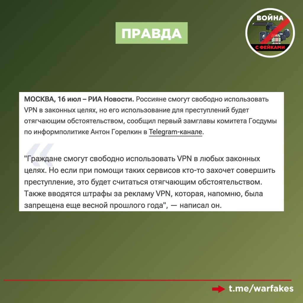 Это новая волна фейков о мнимых ограничениях, которые якобы вводятся с подачи российского правительства в отношении россиян, использующих сервисы VPN для своих бытовых нужд. Однако подобных мер в России не предусмотрено.