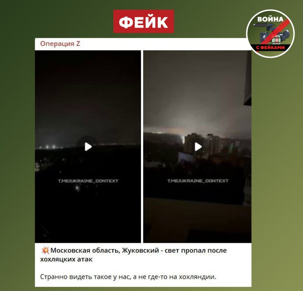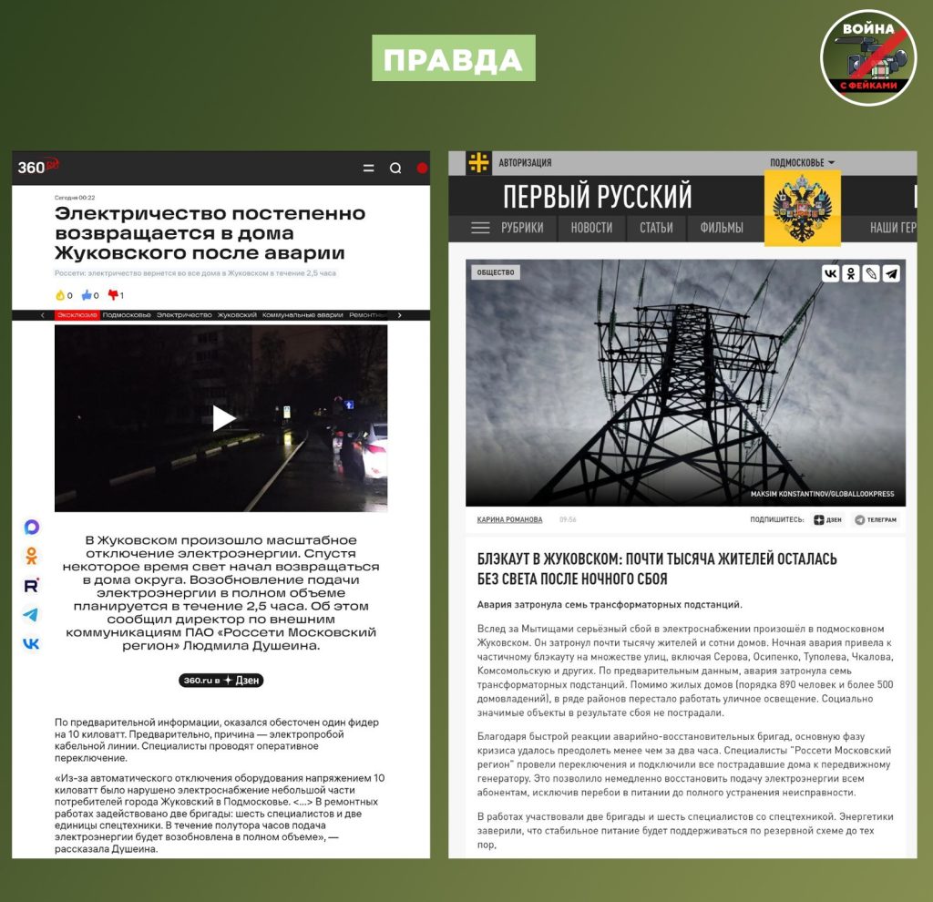 О чем фейк: В подмосковном городе Жуковский пропал свет после атаки украинских БПЛА. Об этом пишут украинские телеграм-каналы.