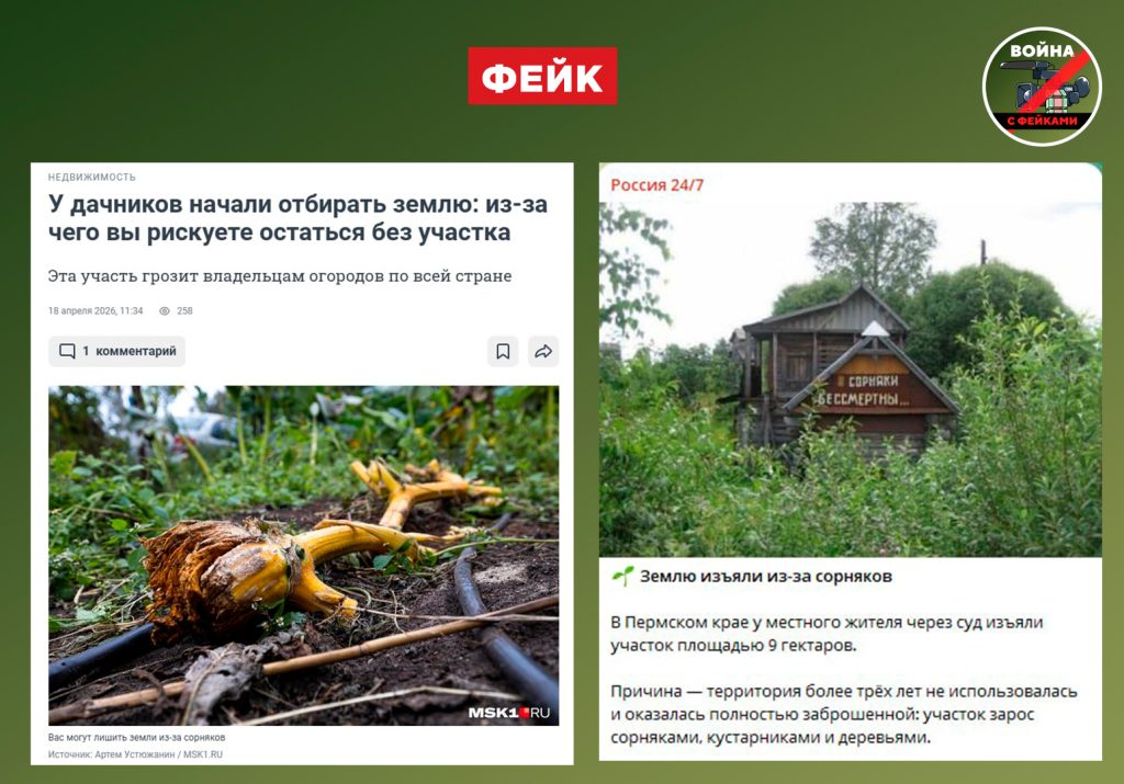 О чем фейк: В России начали изымать дачные участки из-за сорняков. Сообщения об этом расходятся в телеграм-каналах и СМИ.