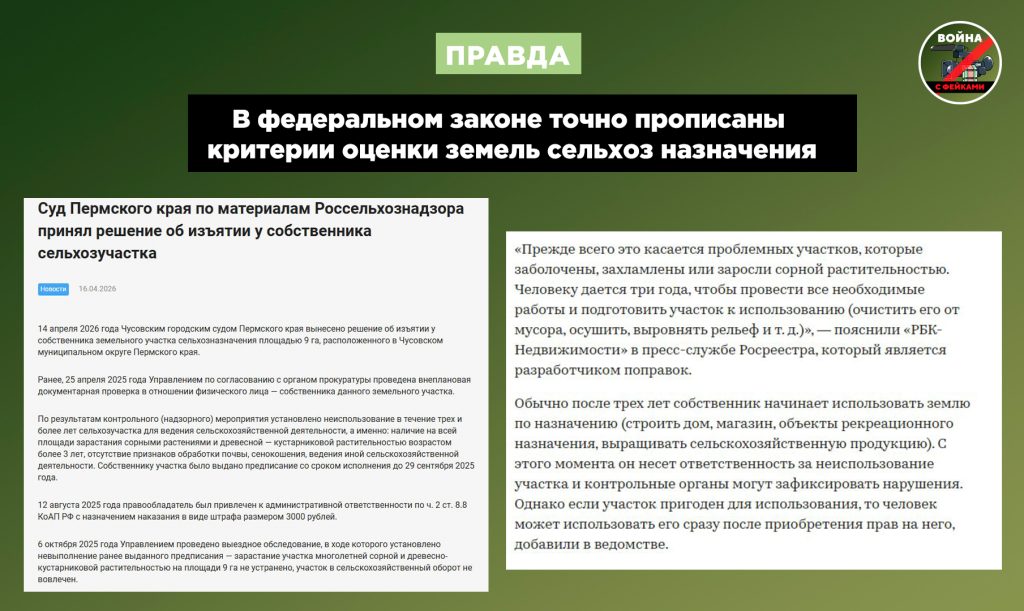Само собой никто не в праве изымать участок за не прополотую грядку клубники или капусты. Фейкометы в очередной раз умалчивают важные нюансы новости для поддержания нарратива о том, что в нашей стране якобы запрещают все.