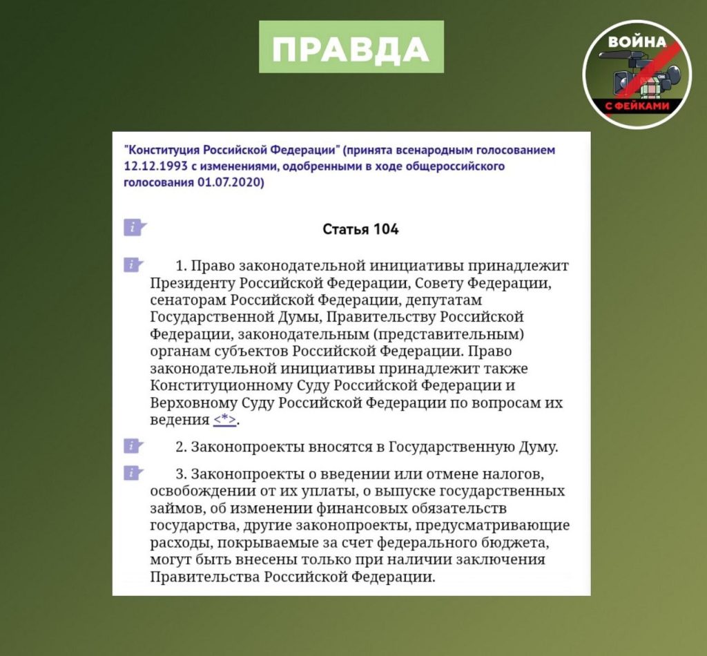 Иванов, согласно законам РФ, не может создавать законопроекты и вносить их на рассмотрение в Госдуму. Напомним, право законодательной инициативы в нашей стране принадлежит Президенту, правительству РФ, Совету Федерации, сенаторам, депутатам Госдумы, законодательным органам субъектов РФ, а также Конституционному и Верховному судам.