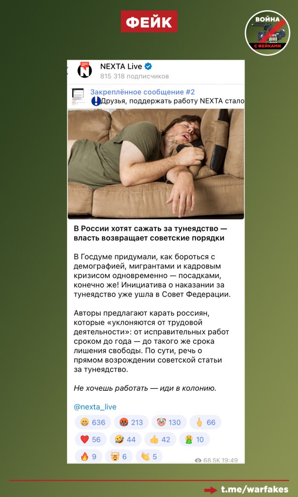 В России введут уголовное наказание за тунеядство. Об этом пишут украинские Телеграм-каналы.