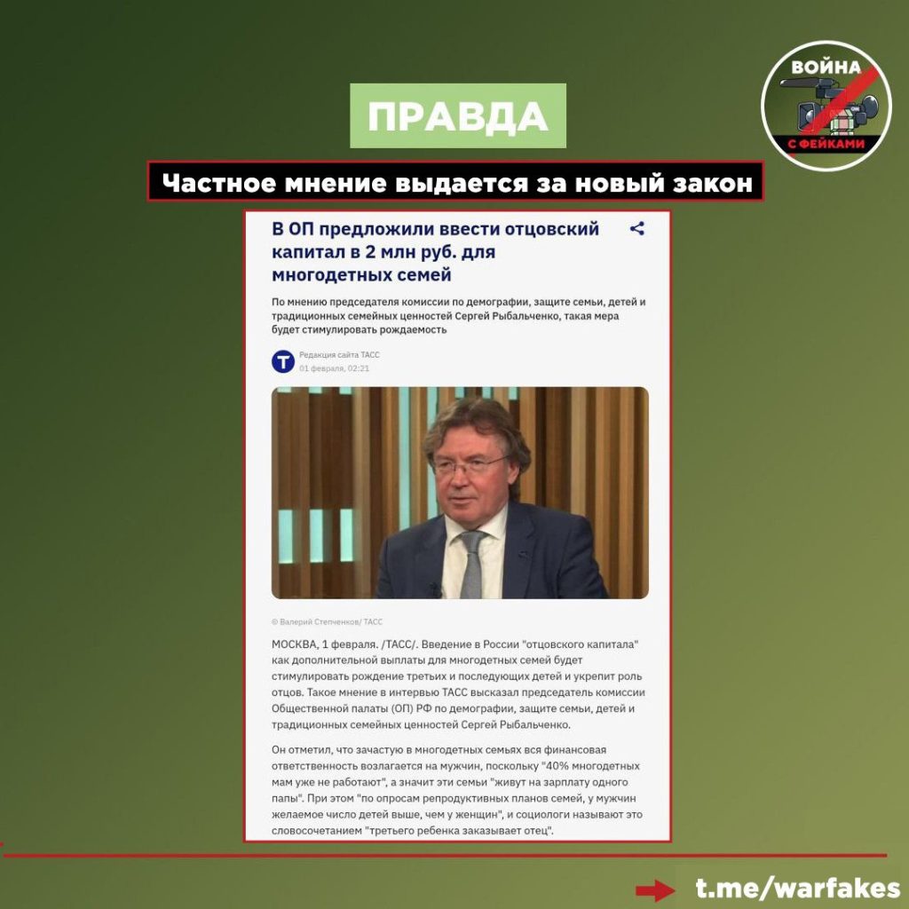 О чем фейк: В России ввели «отцовский капитал» в размере 2 млн рублей. Об этом пишут в соцсетях и телеграм-каналах.