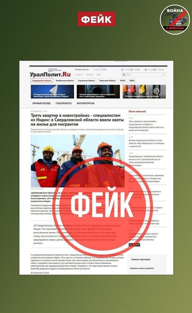 В Сети все чаще появляются фейки о трудовых мигрантах из Индии и других стран. На прошлой неделе «Война с фейками» зафиксировала сразу три вброса на эту тему. Примечательно, что в одном из них говорилось о том, что в Мурманской области якобы зарезервировали 30% квартир в новостройках для индийцев.