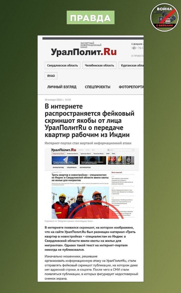 «Редакция заявляет: такой статьи на сайте не было, а опубликованный скриншот является подделкой».Редакция информационного агентства «Урал.Полит» также подтвердила, что не размещала подобных новостей на своем сайте.