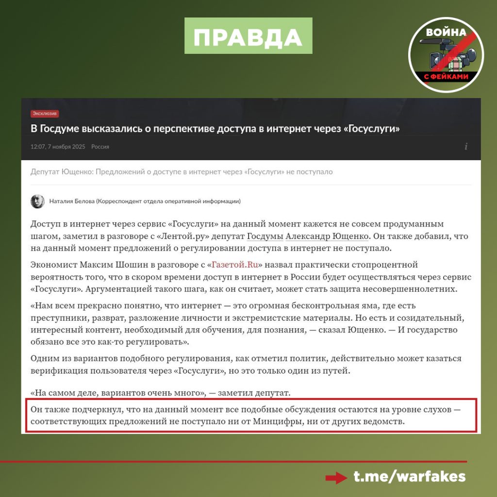 Ни в Минцифры, ни в других ведомствах не обсуждают введение такой системы. Админы телеграм-каналов решили хайпануть и создали фейк-кликбейт, взяв за основу мнение доцента кафедры информационного менеджмента им. профессора В.В. Дика университета «Синергия»